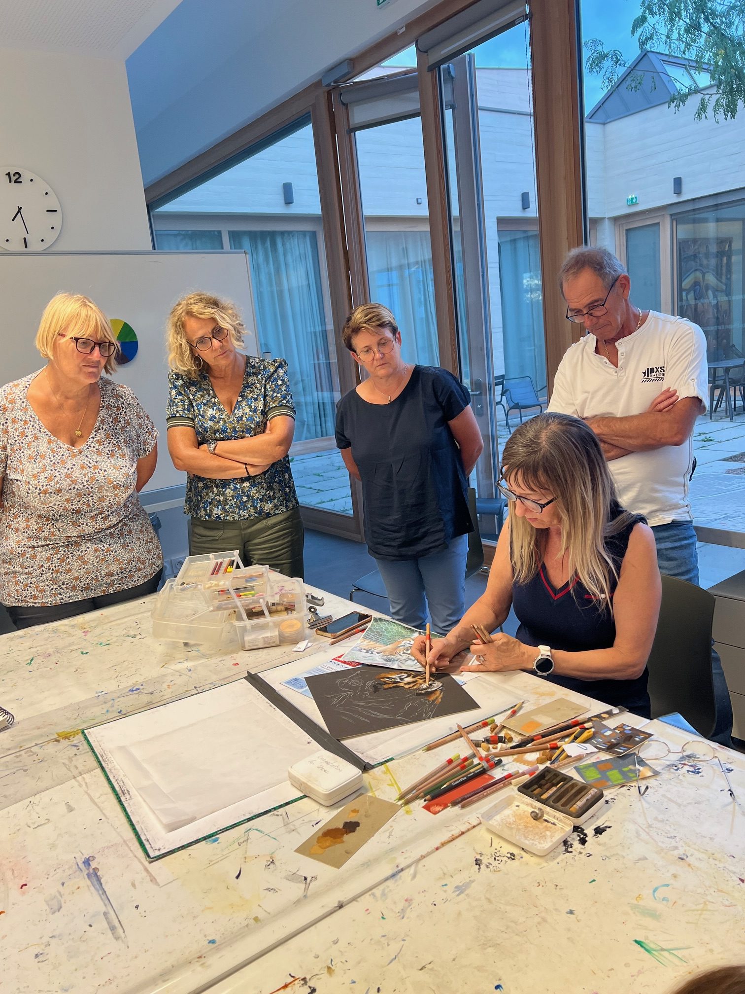 Les participants expérimentent différentes techniques : pastel sec et gras, superpositions, estompes, contrastes et compositions variées. Portraits, paysages, natures mortes ou drapés deviennent autant de sujets pour développer votre regard et affiner votre gestuelle.